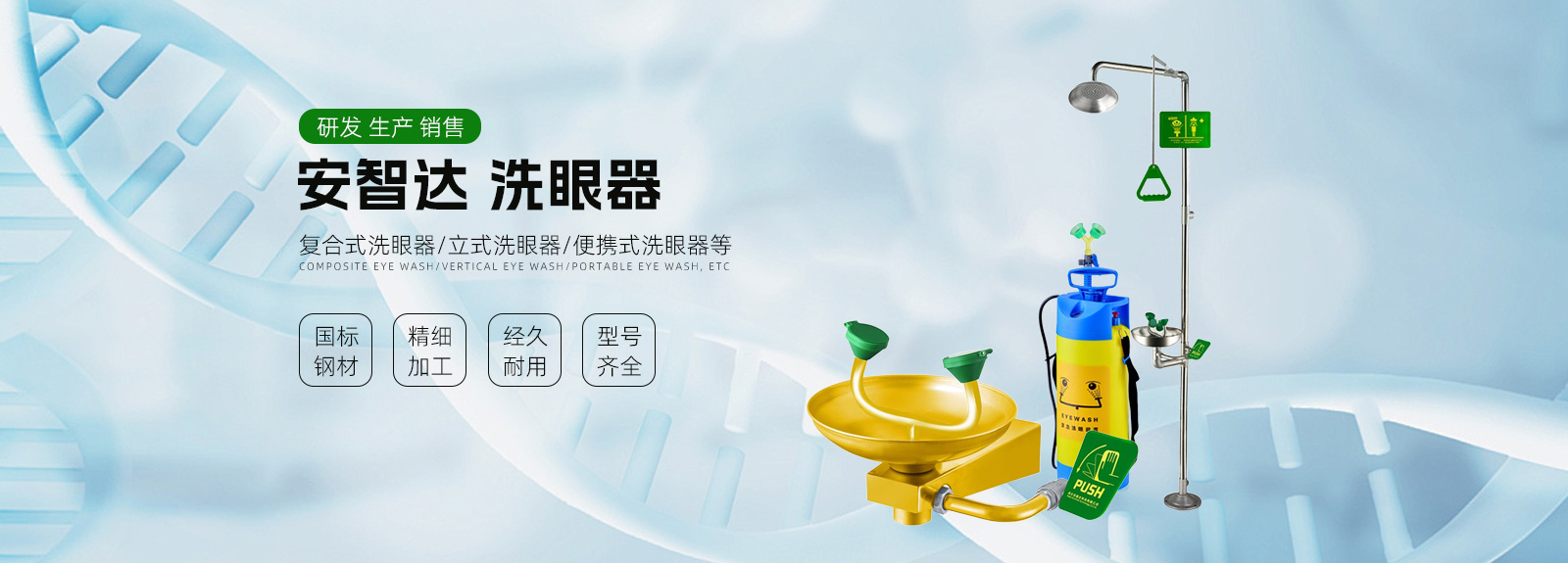 公司主要产品有防冻型洗眼器、复合式洗眼器、立式洗眼器、便携式洗眼器、台式洗眼器、壁挂式洗眼器等六大系列一百多个品种